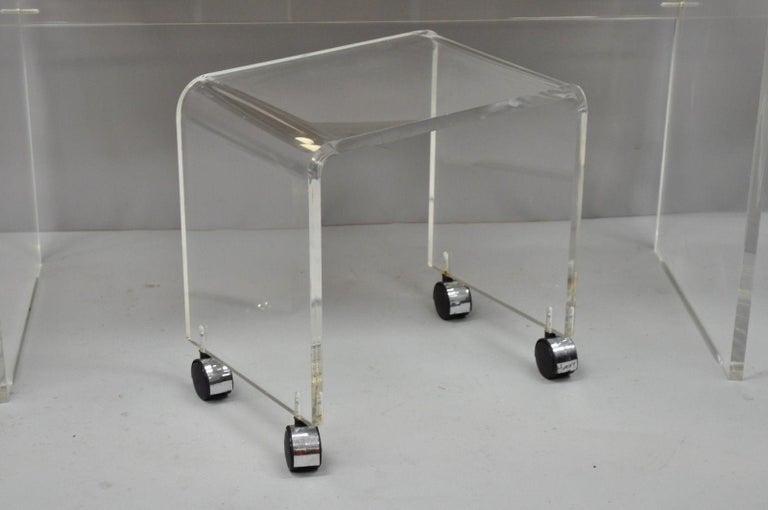 MID-CENTURY MODERN LUCITE VANITY STOOL CHAIR ON WHEELS