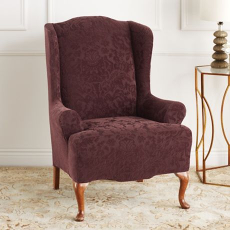 Sure Fit® Stretch Jacquard Damask Wingback Chair Slipcover