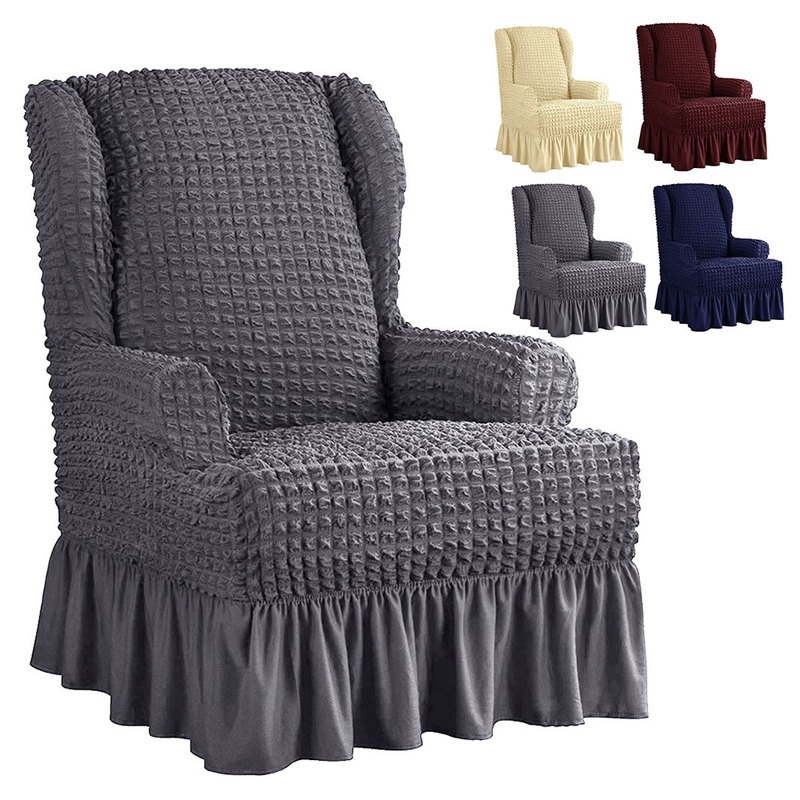 Stretch Wing Chair Cover Skirt Style Wingback Armchair