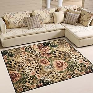 Amazon.com: ALAZA Striped Leopard Print Floral Area Rug
