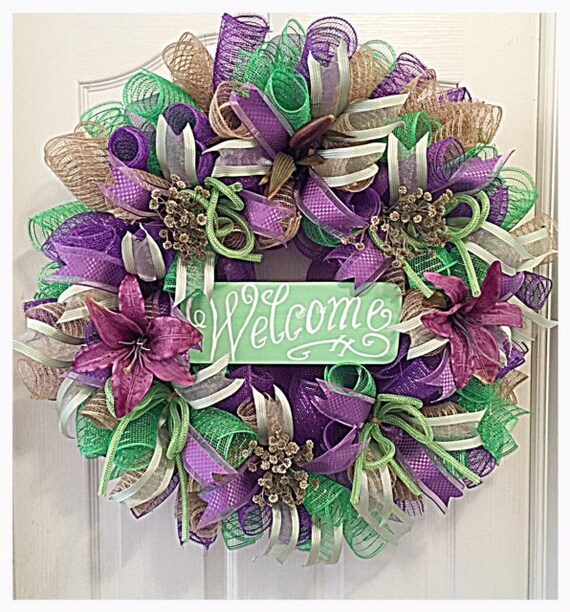Welcome Purple Lily Deco Mesh Wreath/Welcome Lily | Etsy