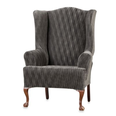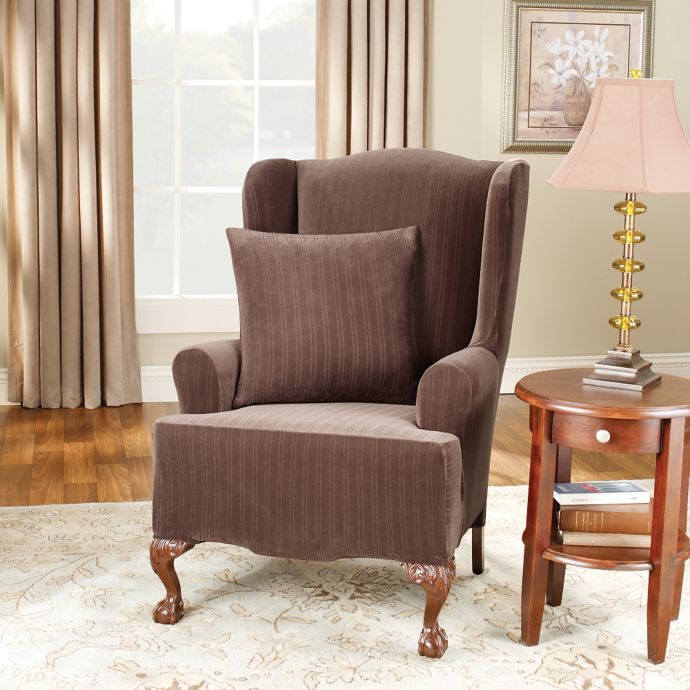 Sure Fit® Stretch Pinstripe Wingback Chair Slipcover | Bed
