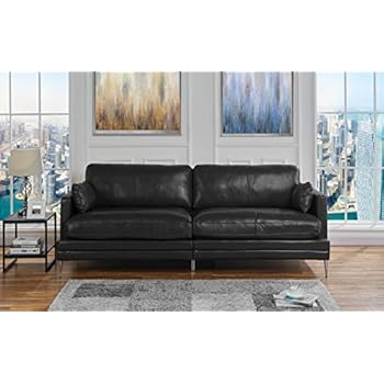 Amazon.com: Black Leather Upholstered Sofa Couch | Modern