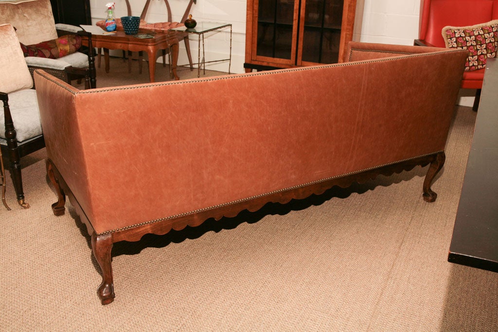 1940s Modern French Deco Floating Arm Sofa with Walnut and