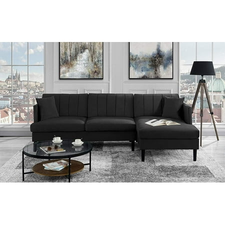Franco Collection Modern L Shaped Leather Sofa Couch Black
