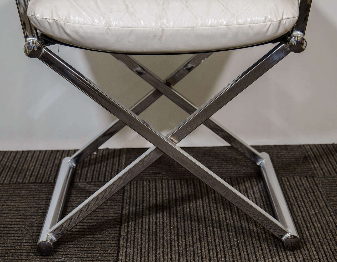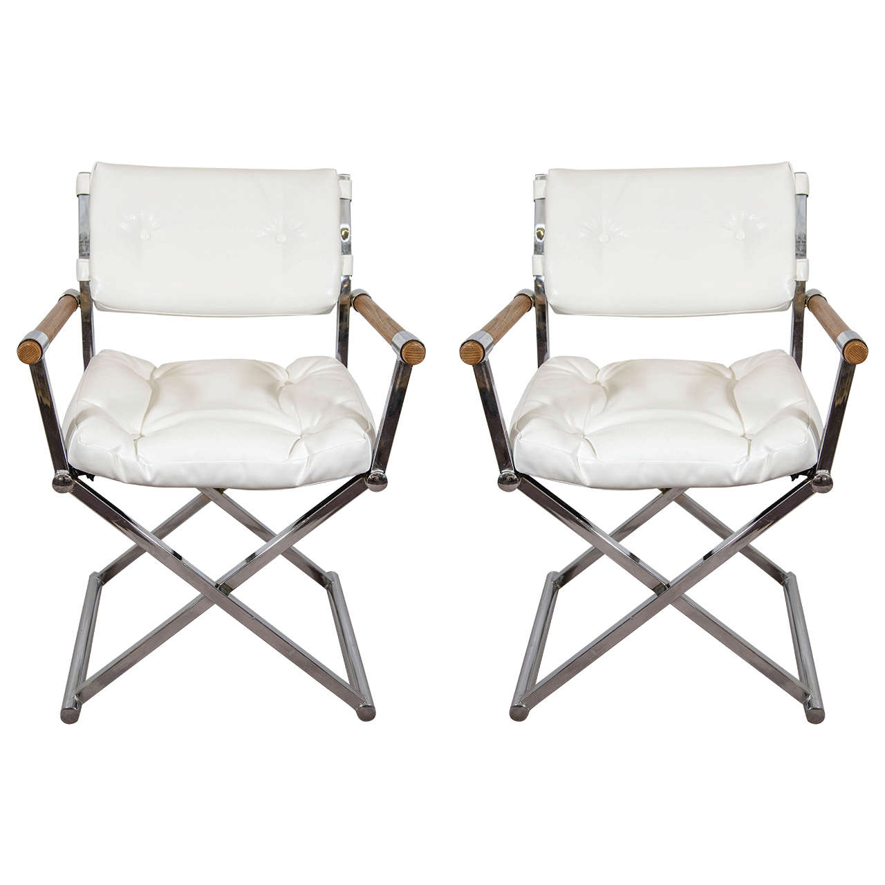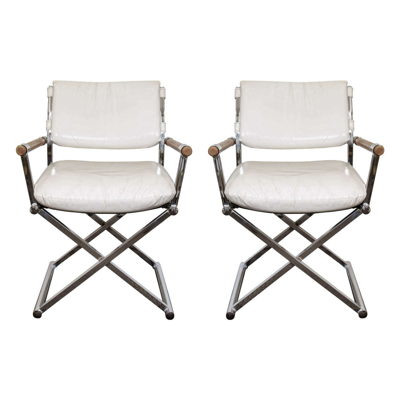 A Mid Century Pair of White Leather Director's Chairs W/ X