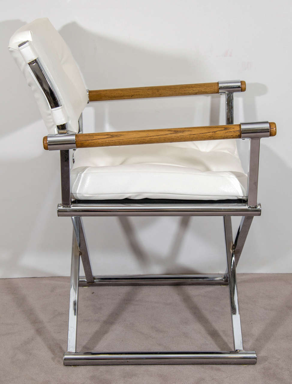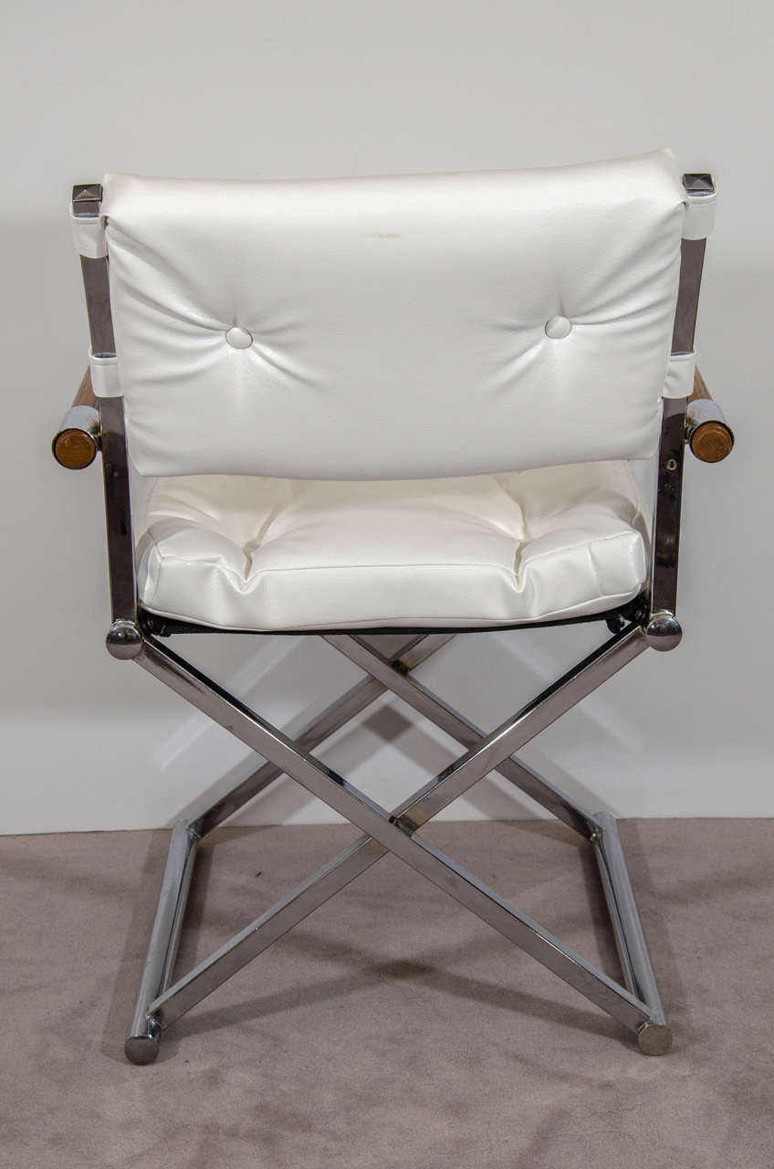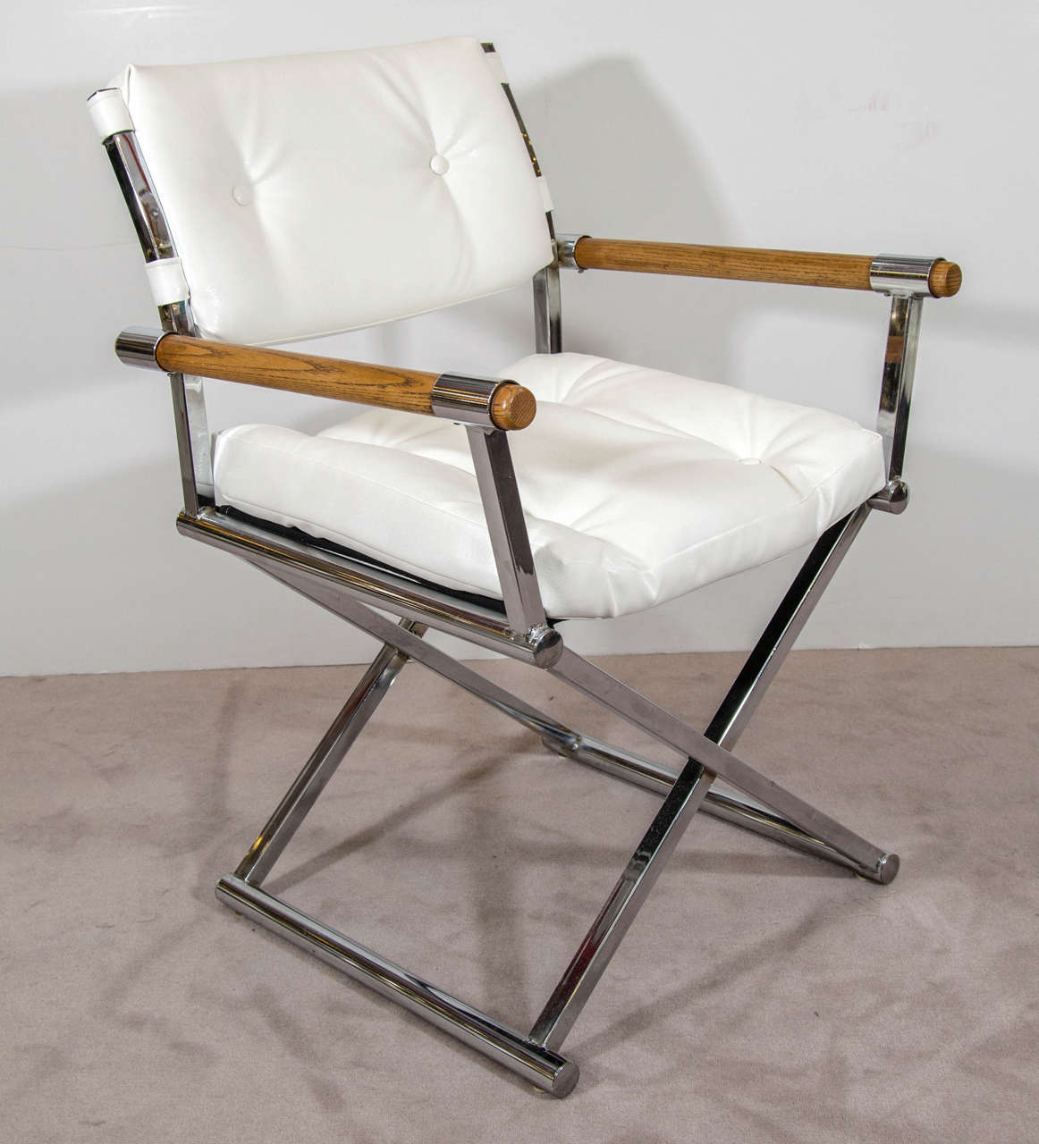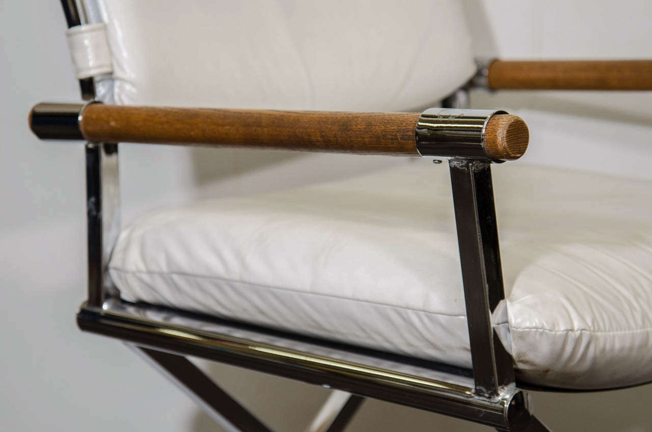 A Mid Century Pair of White Leather Director's Chairs W/ X