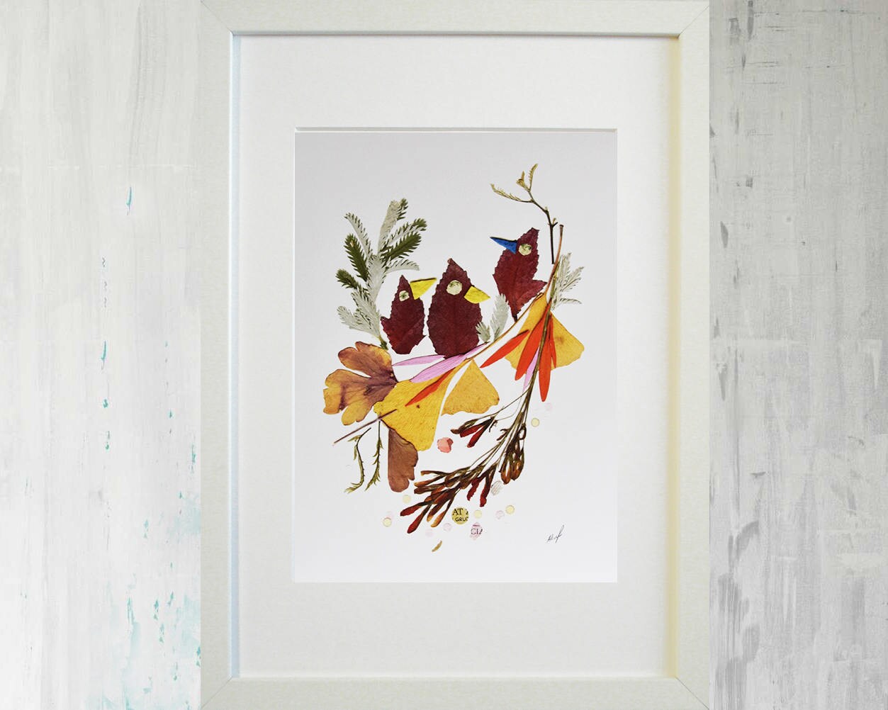Bird art from pressed flowers Wall art decor Dried flowers