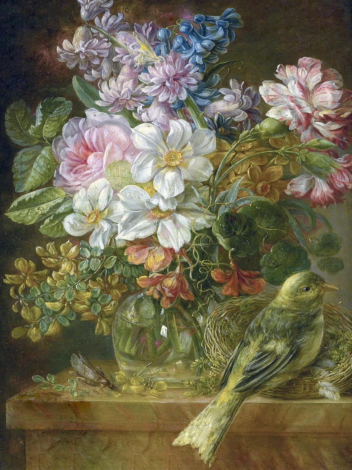 FLOWERS BIRD GRASSHOPPER nest rose Tile Mural Wall