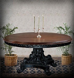 72 034 Hand Carved Mahogany Round Dining Table Black