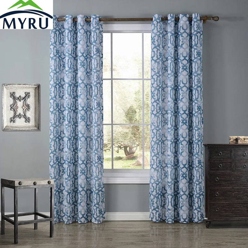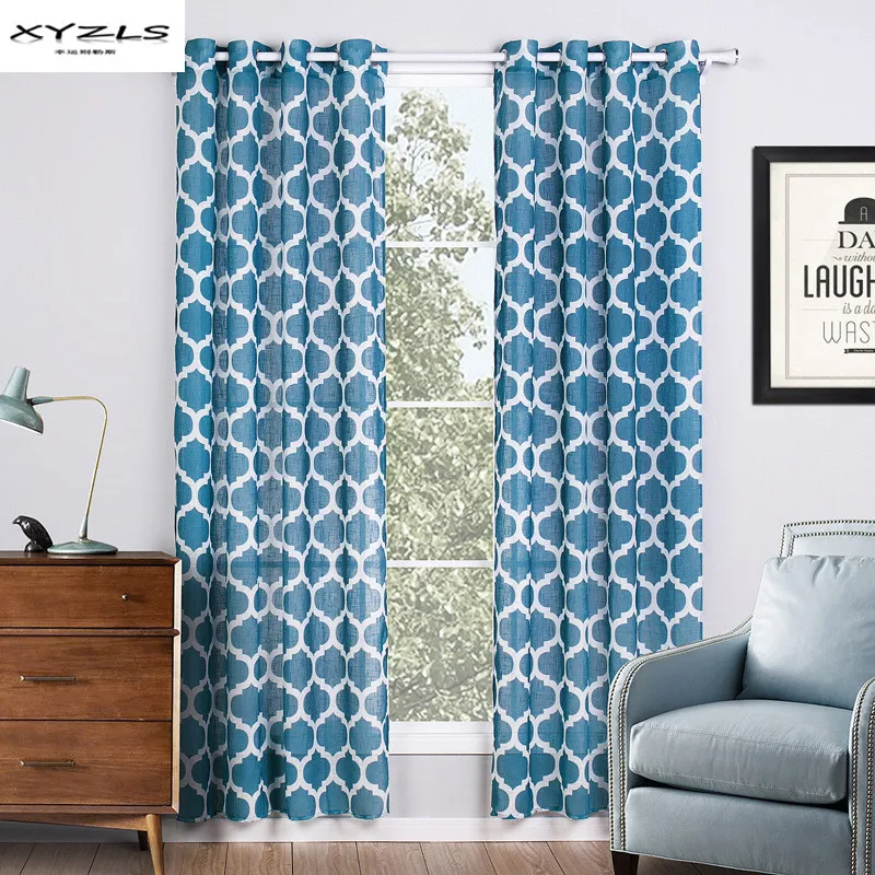 XYZLS Europe Style Blue Geometric Sheer Curtains For