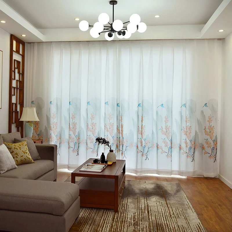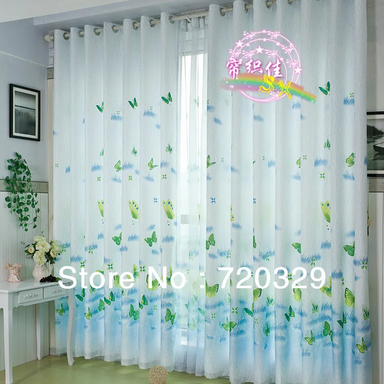 XYZLS Modern Style Window Curtain Living Room Blue Sheer