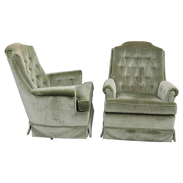 Velvet Seafoam Swivel Club Chairs - a Pair | Chairish