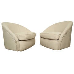 Pair of Upholstered Barrel Back Swivel Club Lounge Chairs
