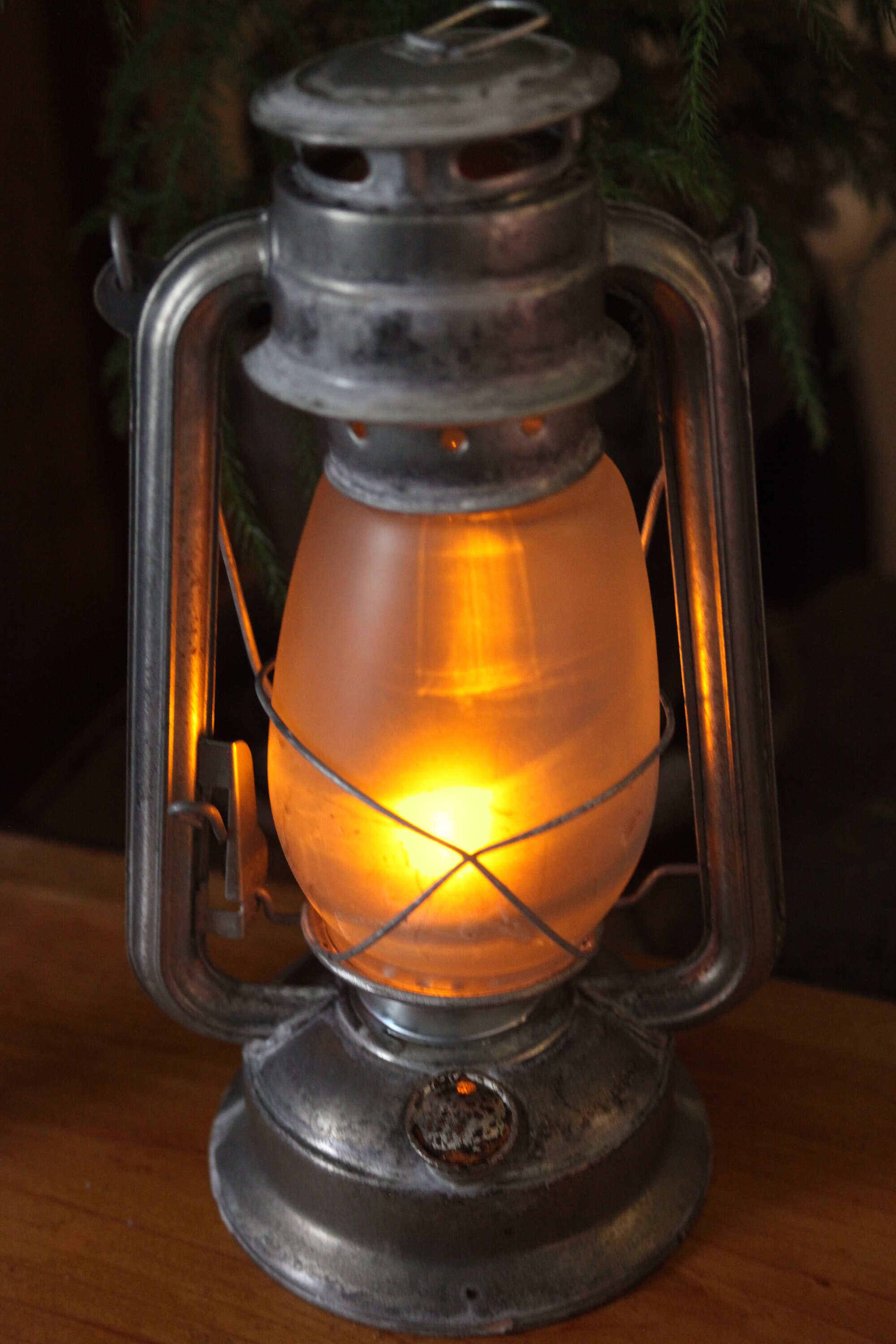 Table Lamp Battery Operated Lantern RUSTIC RUSTY Hurricane