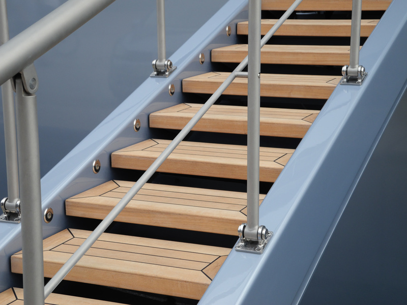 Mono stringer stairs with floating wood treads. | Pinnacle