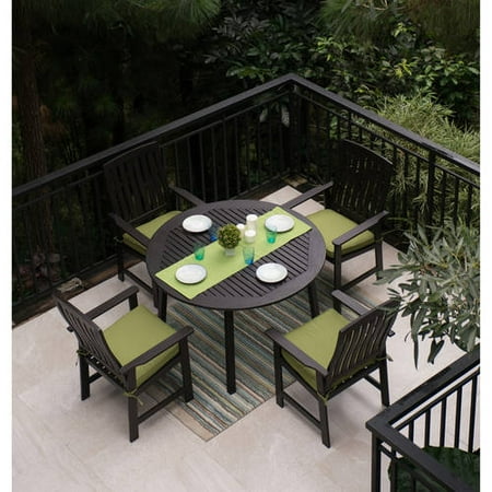 Delahey 5-Piece Wood Patio Dining Set, Dark Brown Finish