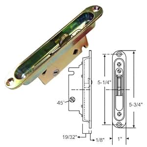 Sliding Glass Patio Door Lock, Mortise Type, 45 Degree