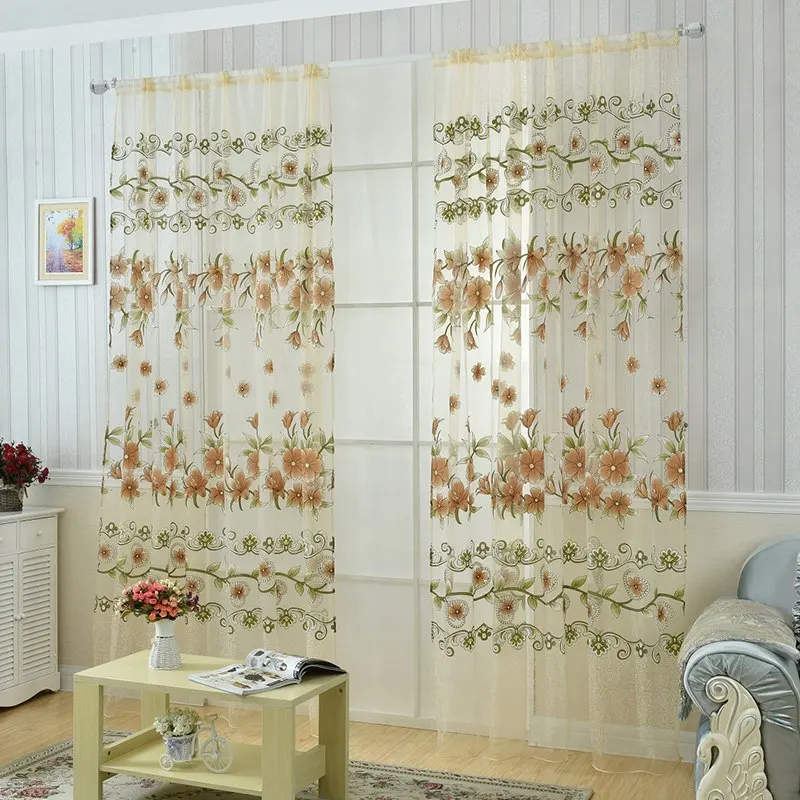 6 Colors Tulle Curtains Cortina Floral Window Voile Sheer
