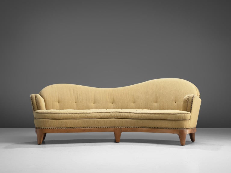 Rare French Curved Sofa with Asymmetrical Backrest, 1930s