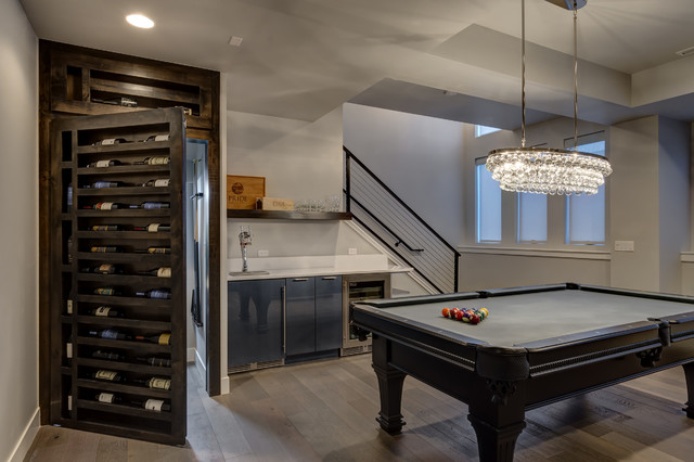Basement Pool Table and Hidden Bookcase Wine Rack