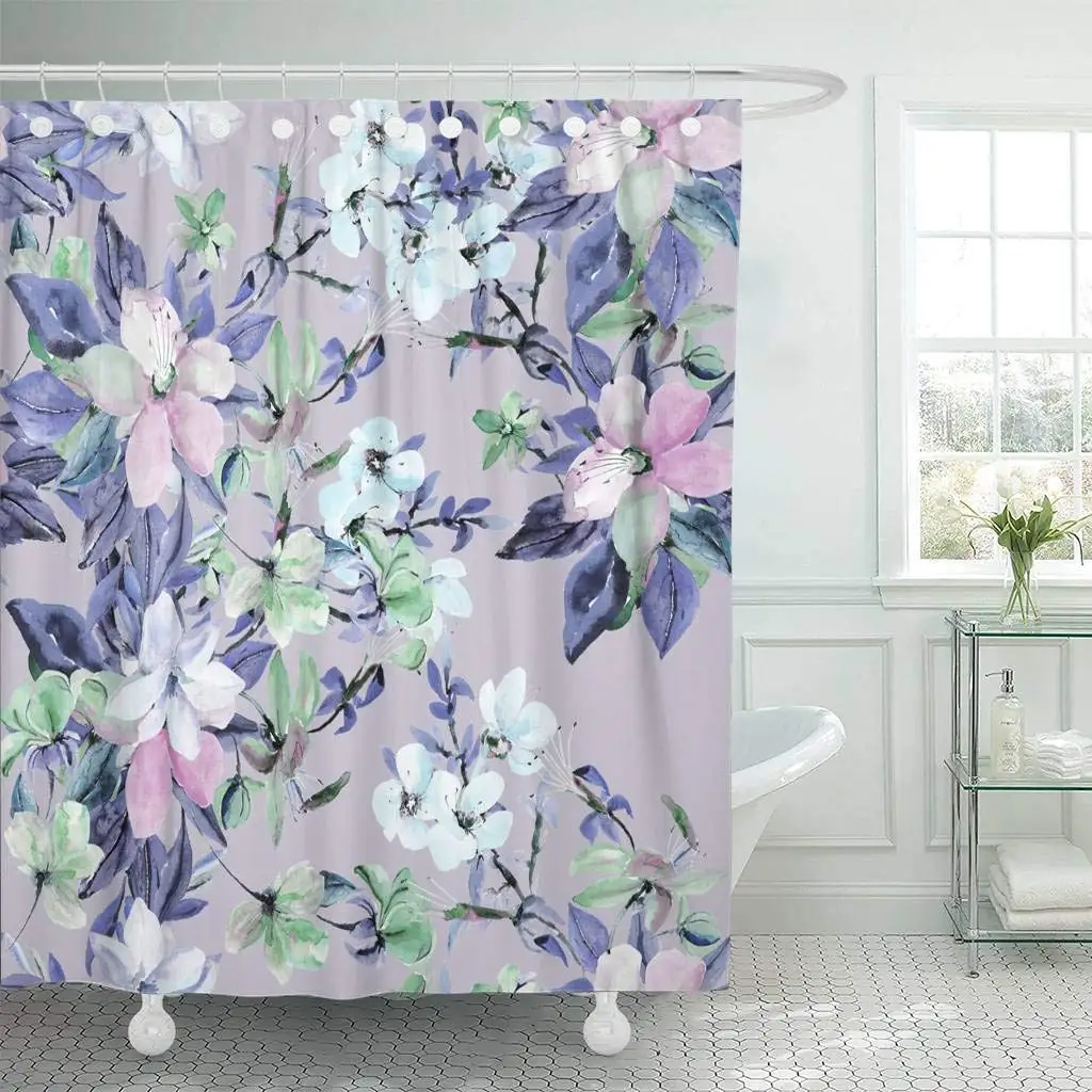 Blue Luxury Fabric Shower Curtain with Beige Floral
