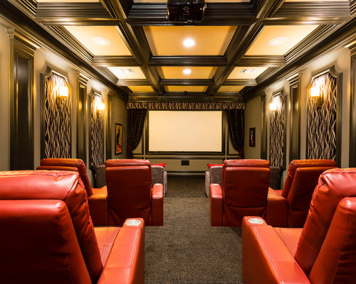 Home Theater With Coffered Ceiling And LED Lights - Some