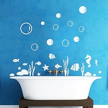 Wall Decals Fish Seaweed Bubbles Bathroom Home Decor
