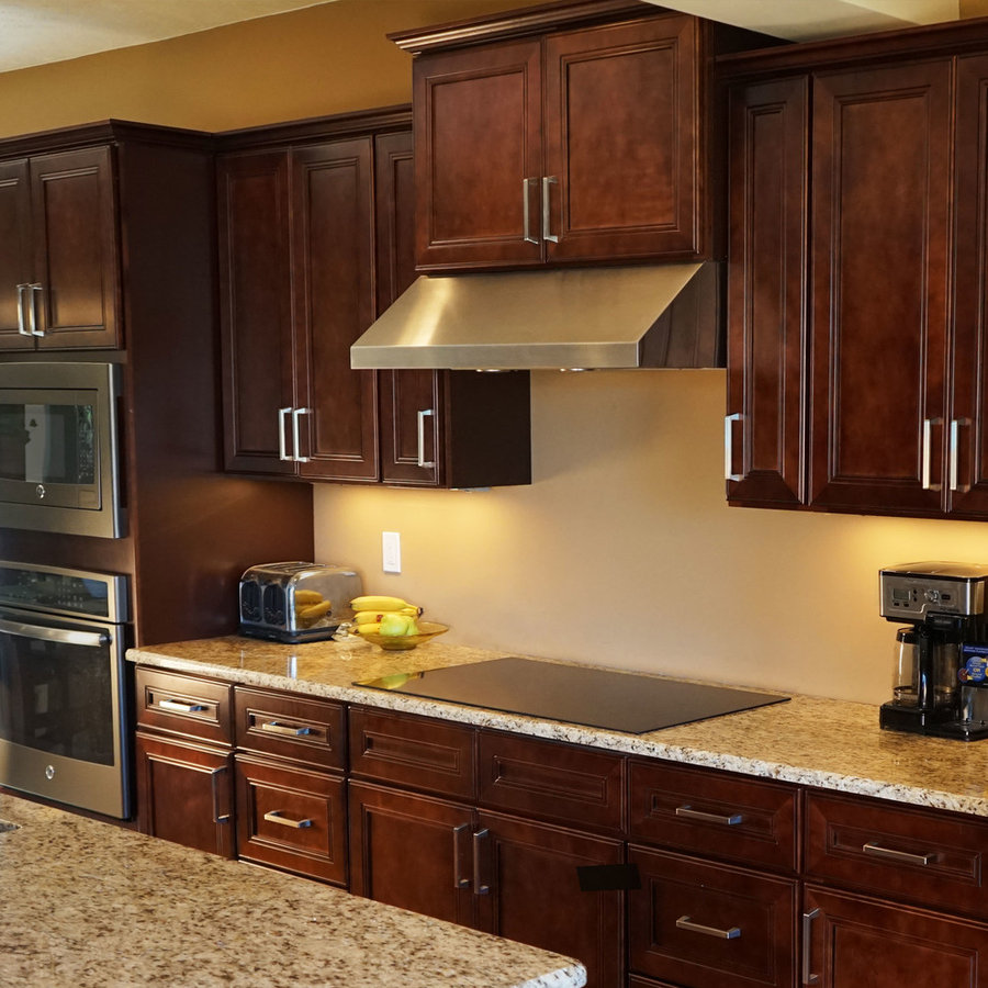Leo Saddle Cherry Mahogany Kitchen Cabinets w/ Soft Close