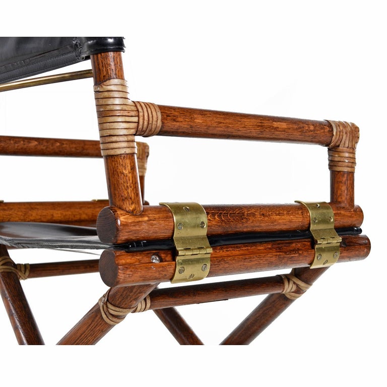 McGuire Director Chair - Vintage Black Leather, Oak & Brass
