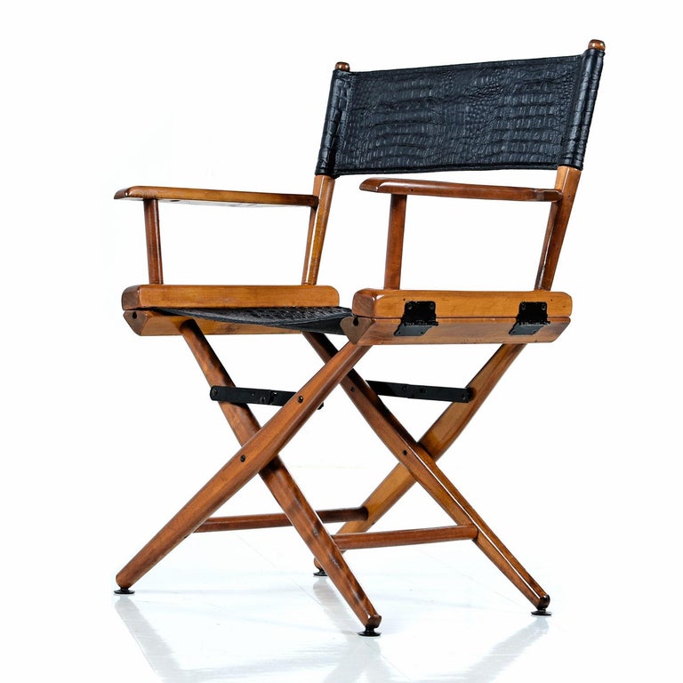 Black Leather Director's Chair For Sale at 1stdibs