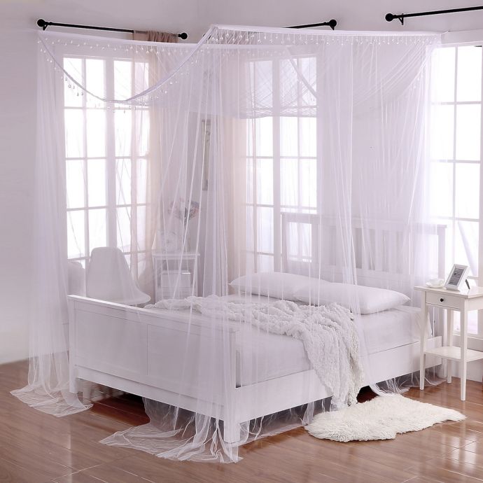 Crystal Sheer 4-Poster Bed Canopy in White | Bed Bath & Beyond