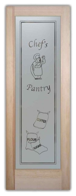 Pantry Door - Happy Chef with Sacks Sandblast Etched Glass