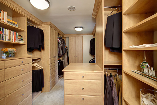 Maple master walk in closet - Contemporary - Closet