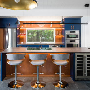 75 Beautiful Mid-Century Modern Blue Kitchen Pictures
