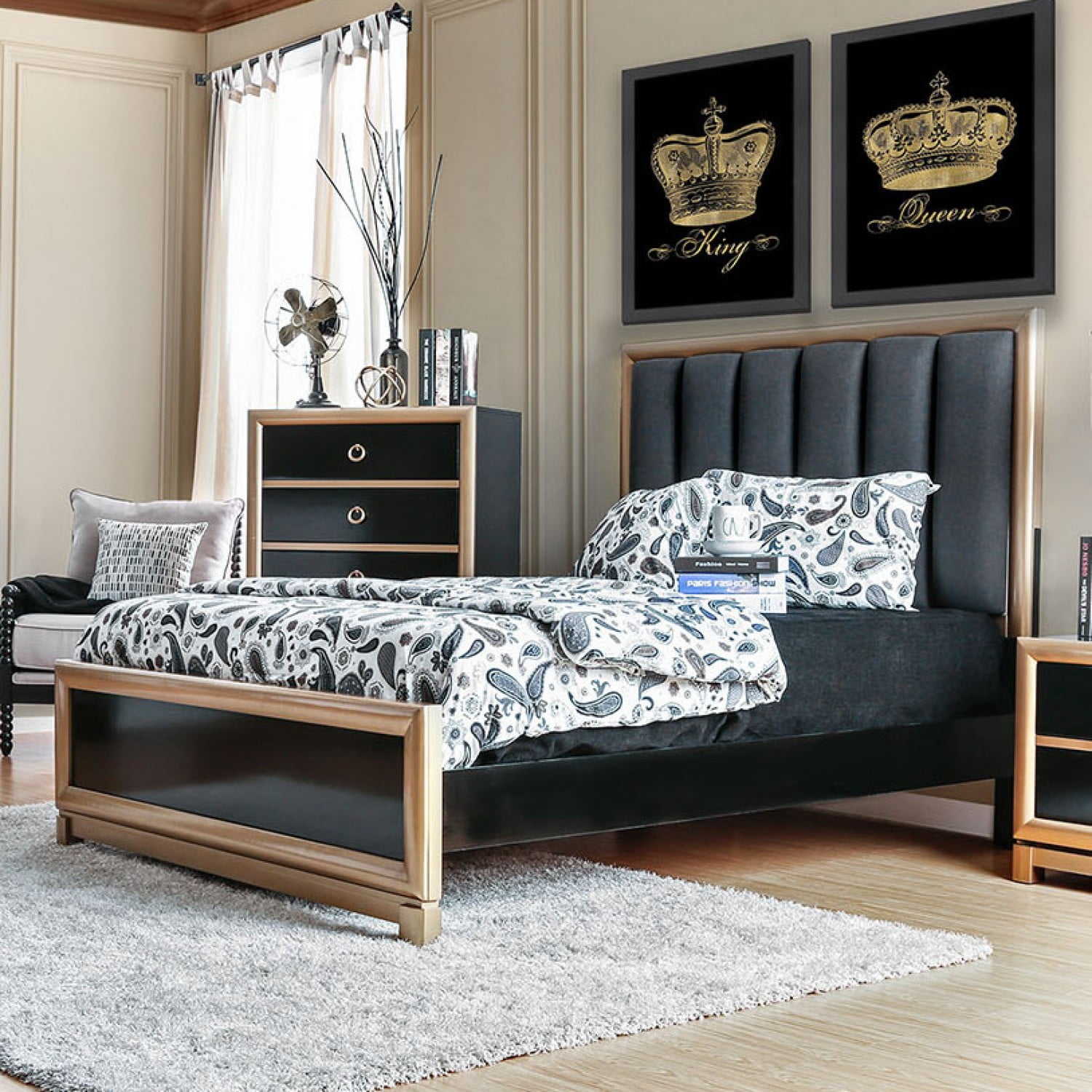 Jazmin Tufted Black Modern Bed with Upholstered Headboard