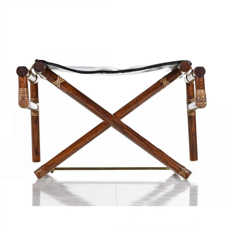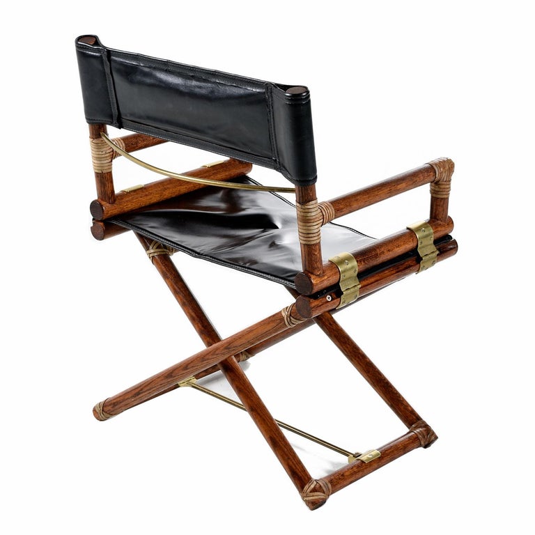 McGuire Director Chair X-Chair, Vintage Black Leather, Oak