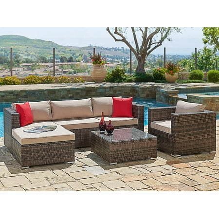 6p MODENZI Modern Patio Wicker Set Outdoor Sectional Sofa