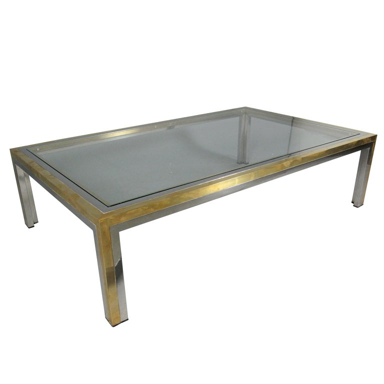 Brass and Chrome Low Rectangular Coffee Table with Inset
