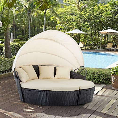 Wicker Rattan Swivel Garden Round Daybed * UK EXCLUSIVE