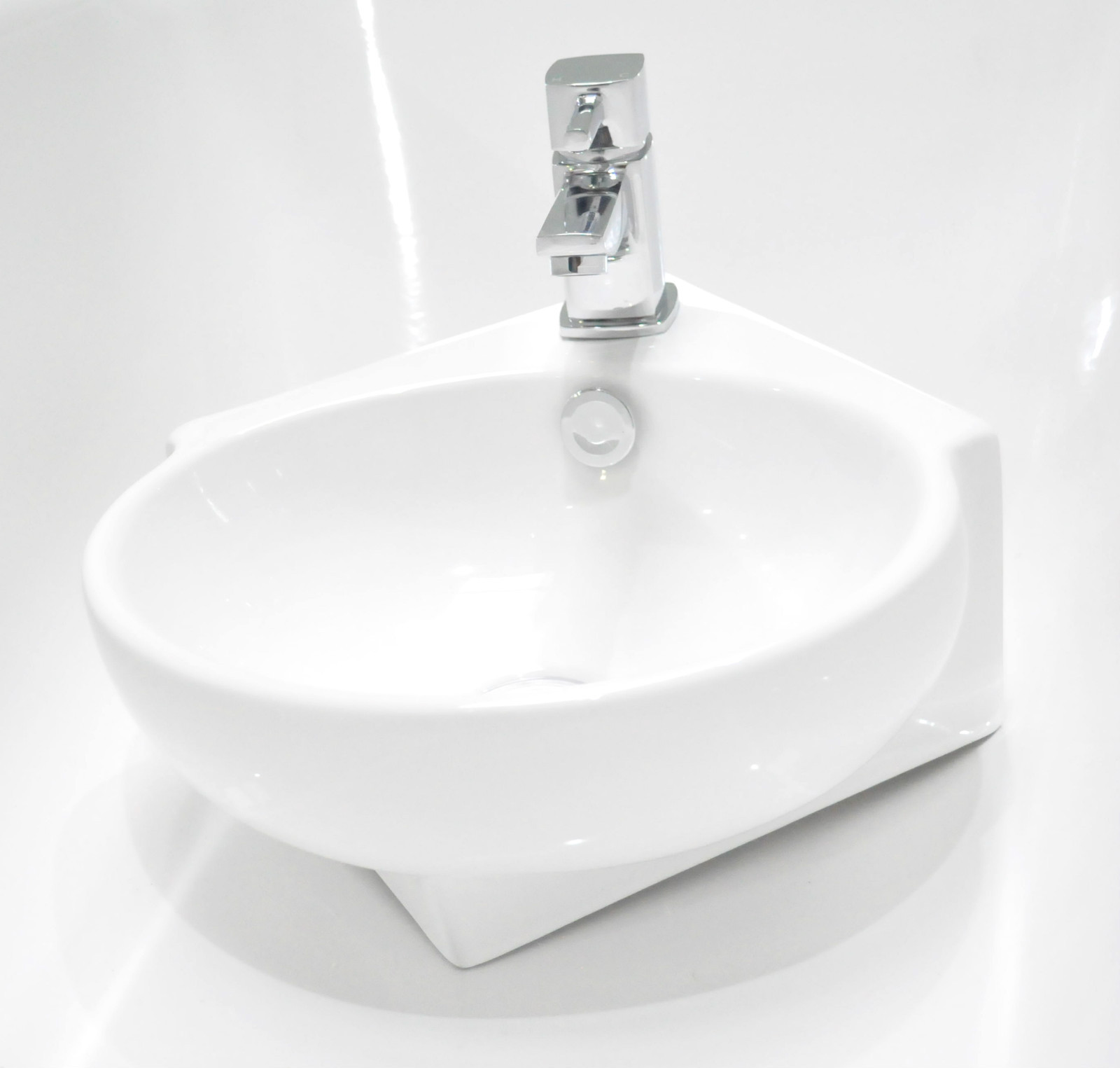 CORNER BASIN SINK ROUND SMALL WALL HUNG COMPACT CLOAKROOM