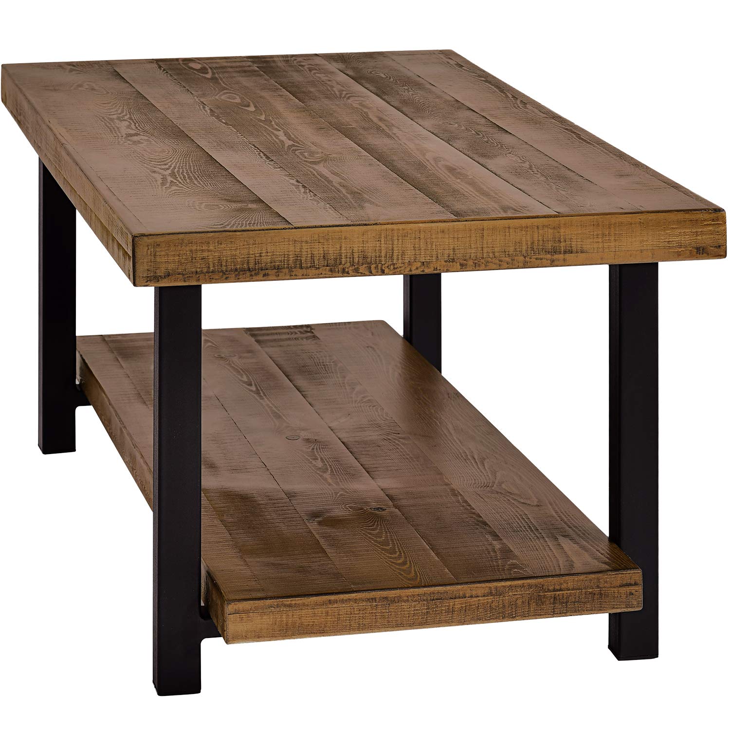 P PURLOVE Designs Coffee Table Rustic Style Solid Wood+MDF