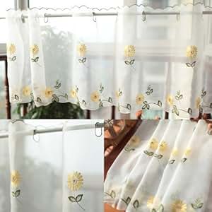 Amazon.com: White Sheer Curtain, Embroidery Sunflower Half
