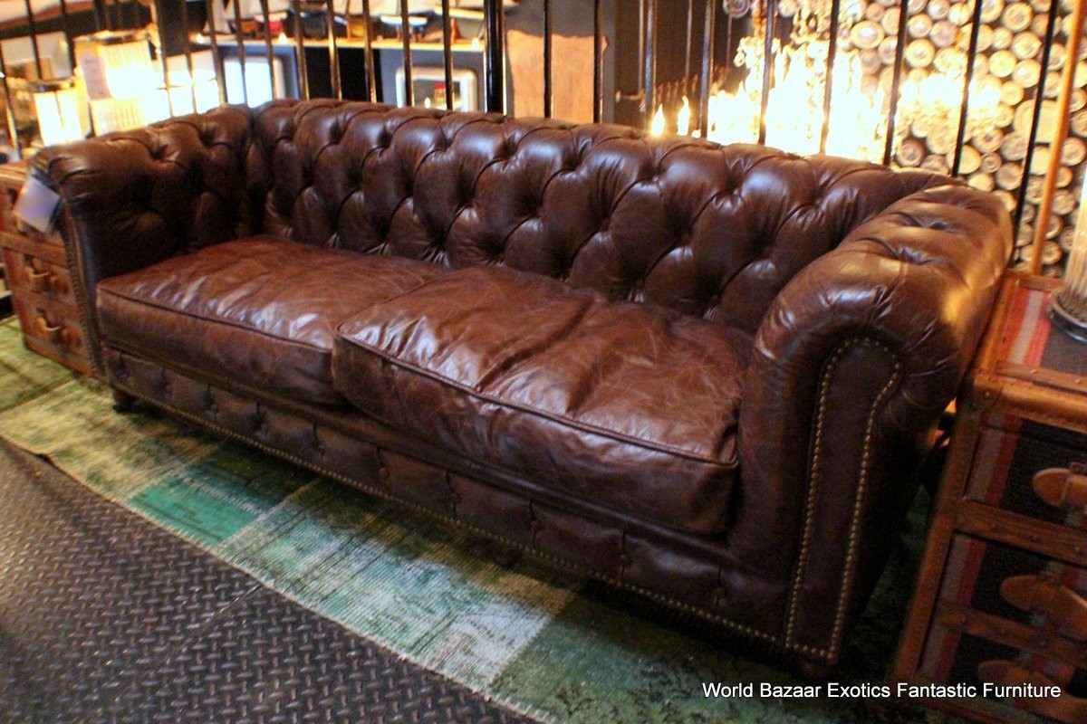 Wildon Distressed Brown Tufted Leather Chesterfield Sofa