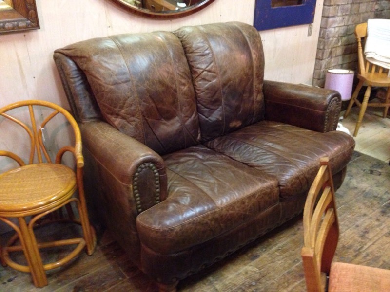 Distressed Brown Real Leather Sofa | Two Seater Full Grain