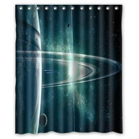HelloDecor Planet Rings Space Spaceship Shower Curtain
