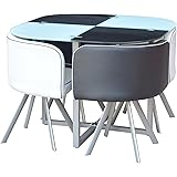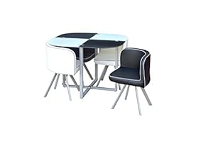 Space Saver Glass Table & 4 Chairs Black and White: Amazon