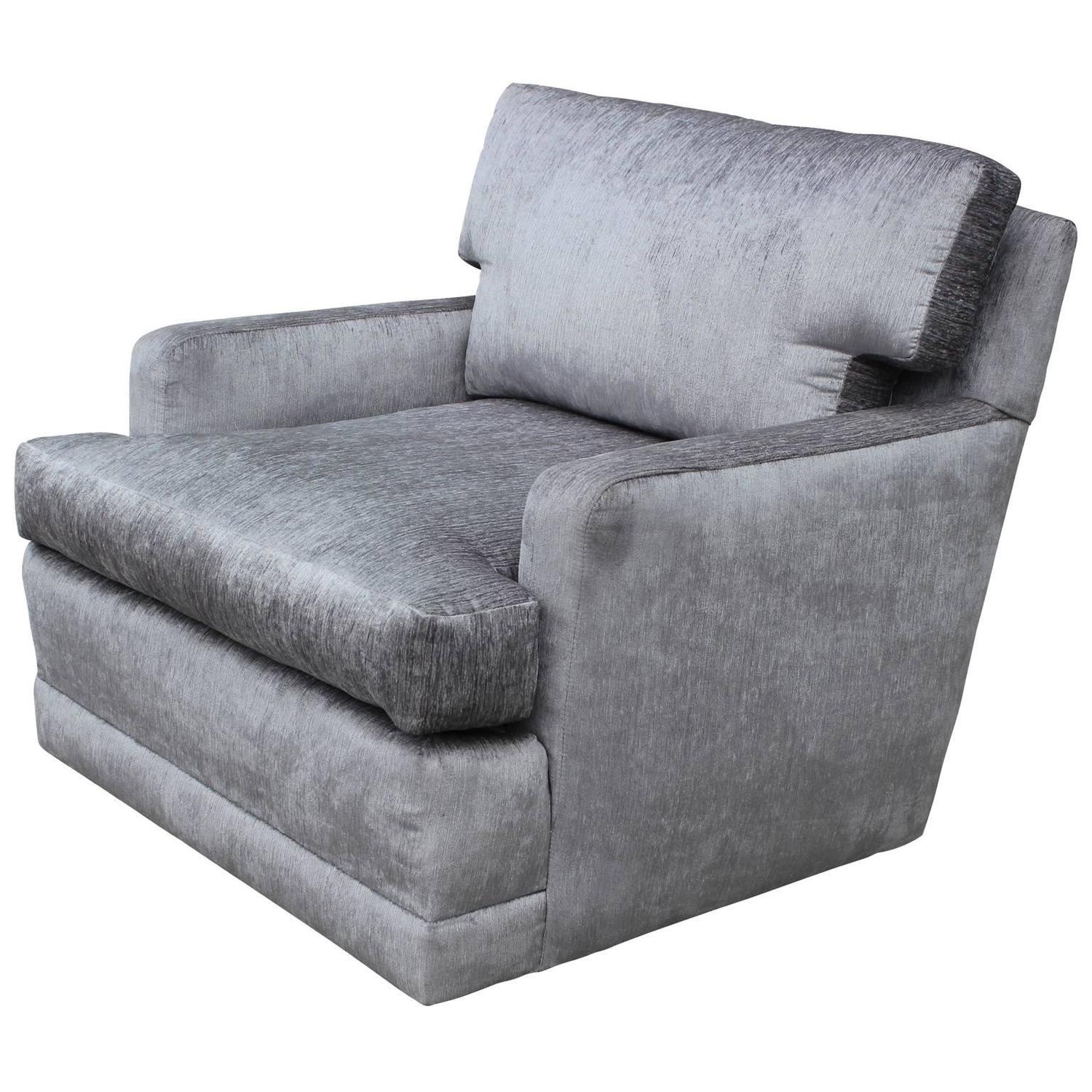 Stunning Silver Velvet Swivel Lounge Chair For Sale at 1stdibs