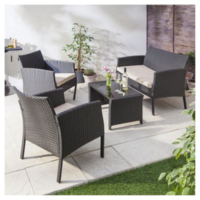 4 Piece Black Algarve Rattan Sofa Set for patios