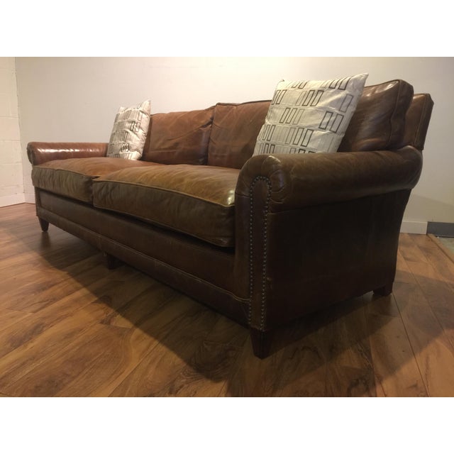 Ralph Lauren Leather Sofa With Throw Pillows | Chairish